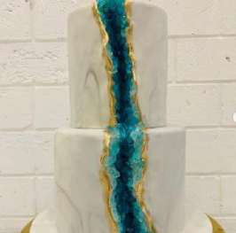 2 tier all real “geode” design achieved with gold dust, sugar crystal, all edible, 3 days advance notice required, colours can be changed of marbling and also crysal. THB 7,000