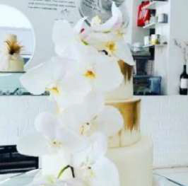 3-Tier Edible Gold, Fresh White Orchids, Fondant