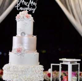 “All real”, flower supplied by the wedding florist on the site (i.e. not included in price) each tier can be a different flavor THB 7,000)
