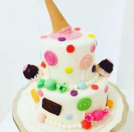 2-Tier Fondant Fun Party Cake with Cone
